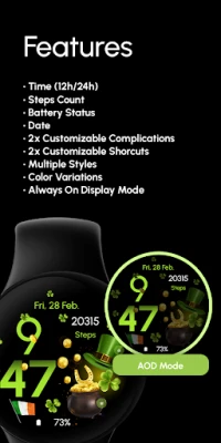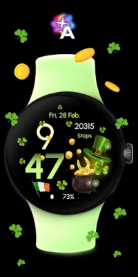 Feir St. Patrick's Day med en elegant urskive. Opplev skinnende gullmynter, et frodig smaragdgrønt fargeskjema og heldige kløvere som bringer feststemningen til håndleddet ditt.