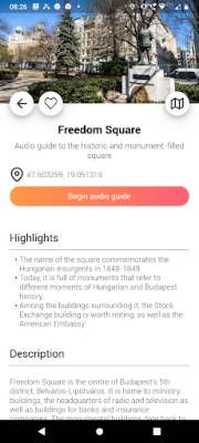 For den ultimate utforskeren tilbyr fullversjonen spektakulære tillegg. Få ubegrenset tilgang til våre bestselgende audioguider på engelsk for ikoniske steder som Frihetsplassen og Margitøya, pluss alle fremtidige guider. Utvid Audiotourista med omfattende funksjoner som "Must-sees" – lokalt anbefalte høydepunkter når tiden er knapp. "When to go" gir deg verdifull innsikt om åpningstider og de travleste periodene for å optimalisere besøket ditt. Med "How to get there" får du praktiske reisetips, inkludert bussholdeplasser, togstasjoner, parkeringsmuligheter og sjarmerende gangruter. Dykk dypere med "Trivia Points" for fascinerende insiderfakta om Budapest og dets attraksjoner og finn de perfekte "Best Photo Stops" for å fange fantastiske minner. Alt dette uten reklame, slik at du kan fokusere fullt ut på din reise.