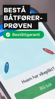 Forbered deg til båtførerprøven med Båtførerappen, Norges foretrukne valg for tusenvis av aspirerende båtførere. Siden 2020 har over 284.000 nordmenn valgt Båtførerappen for å mestre pensum, et bevis på appens enestående effektivitet. Vi er så sikre på din suksess at vi tilbyr en unik beståttgaranti: bestå prøven med glans, eller få pengene tilbake. Med en tilnærmet feilfri statistikk for bestått, kan du stole på at Båtførerappen gir deg den tryggheten du trenger for å lykkes på første forsøk.