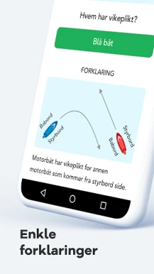 Båtførerappen guider deg gjennom hvert tema du må beherske. Våre pedagogiske videokurs bryter ned komplekse emner til lettfordøyelige leksjoner, etterfulgt av interaktive quizer som sikrer at kunnskapen sitter før du avanserer. Du får også tilgang til en omfattende bank av oppgaver som er nøyaktig utformet for å speile den faktiske båtførerprøven. Hvert spørsmål kommer med grundige forklaringer, slik at du ikke bare lærer svaret, men forstår hvorfor det er korrekt, og bygger en solid faglig ballast.
