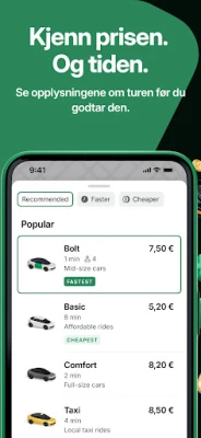 Forestill deg en verden hvor byreiser er enkle, rimelige og alltid tilgjengelige. Bolt forvandler din smarttelefon til din personlige transportassistent, som sømløst forbinder deg med en sjåfør i nærheten for en komfortabel og kostnadseffektiv reise. Enten du skal til jobb, møte venner eller utforske nye steder, er Bolt din pålitelige partner. Med lynraske ankomsttider, tilgjengelig døgnet rundt, og full åpenhet rundt priser før du bekrefter turen, elimineres all usikkerhet. Betaling er dessuten en lek, direkte i appen, med støtte for kredittkort, debetkort og Apple Pay.
