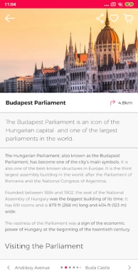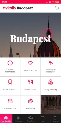 Utforsk Budapests ikoniske landemerker med detaljerte beskrivelser av åpningstider, priser og veibeskrivelser. Fra majestetiske slott til berømte badehus, vil du vite nøyaktig hvordan du kommer deg dit og hva du kan forvente. Optimaliser reisetiden din med vår transportoversikt som viser deg de mest effektive måtene å komme deg rundt i byen, uavhengig av om du foretrekker offentlig transport eller en avslappende spasertur. Ikke glem å sikre deg de perfekte suvenirene – guiden peker ut de beste shoppingområdene. Og for å virkelig maksimere opplevelsen, kan du enkelt oppdage og bestille spennende Civitatis-aktiviteter, fra guidede turer til utflukter, direkte via appen.