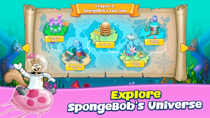 Skap din helt egen versjon av Bikini Bunnen og begi deg ut på reiser til ikoniske steder fra Svampebobs univers, som Manetengene, Nye Tangby, Atlantis og mange flere. Utforsk ukjente områder, restaurer ødelagte landskap og bygg opp Svampebobs verden til sin tidligere prakt. Underveis vil du møte en rekke kjente og nye ansikter, fra Patrick og Sandy til Herr Krabbe og Blekulf, som alle vil bistå deg i din storslåtte oppgave. Interaksjon med disse elskede karakterene er nøkkelen til suksess mens du vever deg gjennom den spennende fortellingen.