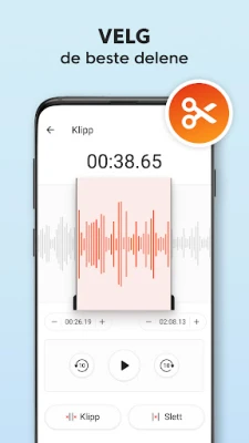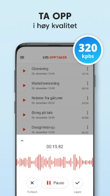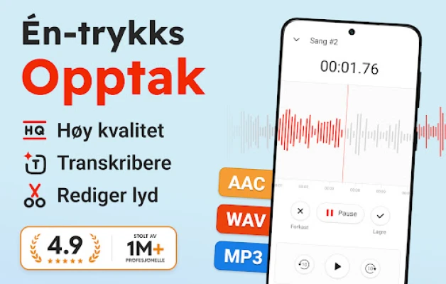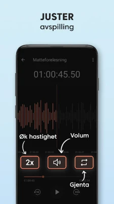 Med Taleopptak Pluss får du full kontroll over dine lydopptak. Trenger du å rette på noe? Med den unike overskrivingsfunksjonen kan du spole tilbake og redigere fra et spesifikt punkt, noe som sikrer plettfrie resultater hver gang. Nyt imponerende lydkvalitet med valg mellom mono- og stereoopptak, lagret i formater som AAC og WAV. Appen arbeider i bakgrunnen, slik at du kan fortsette å bruke telefonen mens Taleopptak Pluss diskret tar opp. Og skulle noe avbryte opptaket ditt, sørger automatisk lagring for at ingen verdifulle lyder går tapt. Den eneste grensen for opptakstiden er telefonens lagringsplass.