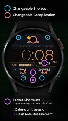 Sentralt i designet er en digital klokke som automatisk tilpasser seg telefonens 12- eller 24-timersformat. I tillegg til klokkeslettet, får du umiddelbar tilgang til viktige data som dato, batteriprosent og din hjertefrekvens. Hold oversikt over aktiviteten din med en justerbar skritteller. Mulighetene stopper ikke der; urskiven tilbyr hele tre tilpassbare komplikasjonsplasser og fire programmerbare snarveier, slik at du kan plassere din mest brukte informasjon og apper akkurat der du trenger dem. For ekstra bekvemmelighet kommer den også med tre forhåndsinnstilte snarveier til Batteri, Kalender og Hjertefrekvens – bare et trykk unna.