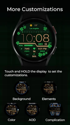 Feir St. Patrick's Day med stil og et snev av modernitet rett på håndleddet ditt! Denne unike urskiven er elegant designet for å fange den festlige ånden, samtidig som den leverer en sømløs og intuitiv brukeropplevelse. Med et friskt og moderne uttrykk, gir den smartklokken din et personlig preg som skiller seg ut. Utforsk en verden av tilpasningsmuligheter som lar deg skreddersy urskiven til din egen stil og informasjonsbehov, alt med noen enkle trykk – bare hold inne skjermen og velg tilpasningsalternativet.