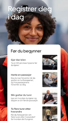 Å komme i gang er enkelt og stressfritt. Uber Driver veileder deg gjennom hvert trinn av registreringsprosessen, og sørger for at du er fullt forberedt før din første tur. Med et intuitivt brukergrensesnitt lærer du raskt å navigere appens funksjoner, slik at du føler deg trygg og kompetent fra dag én. Skulle du ha spørsmål eller støte på utfordringer, er dedikert hjelp alltid innen rekkevidde via et enkelt verktøy direkte i appen. Merk at appen typisk bruker rundt 2 GB data per måned, og bruk av navigasjonsfunksjoner kan påvirke telefonens batteritid.